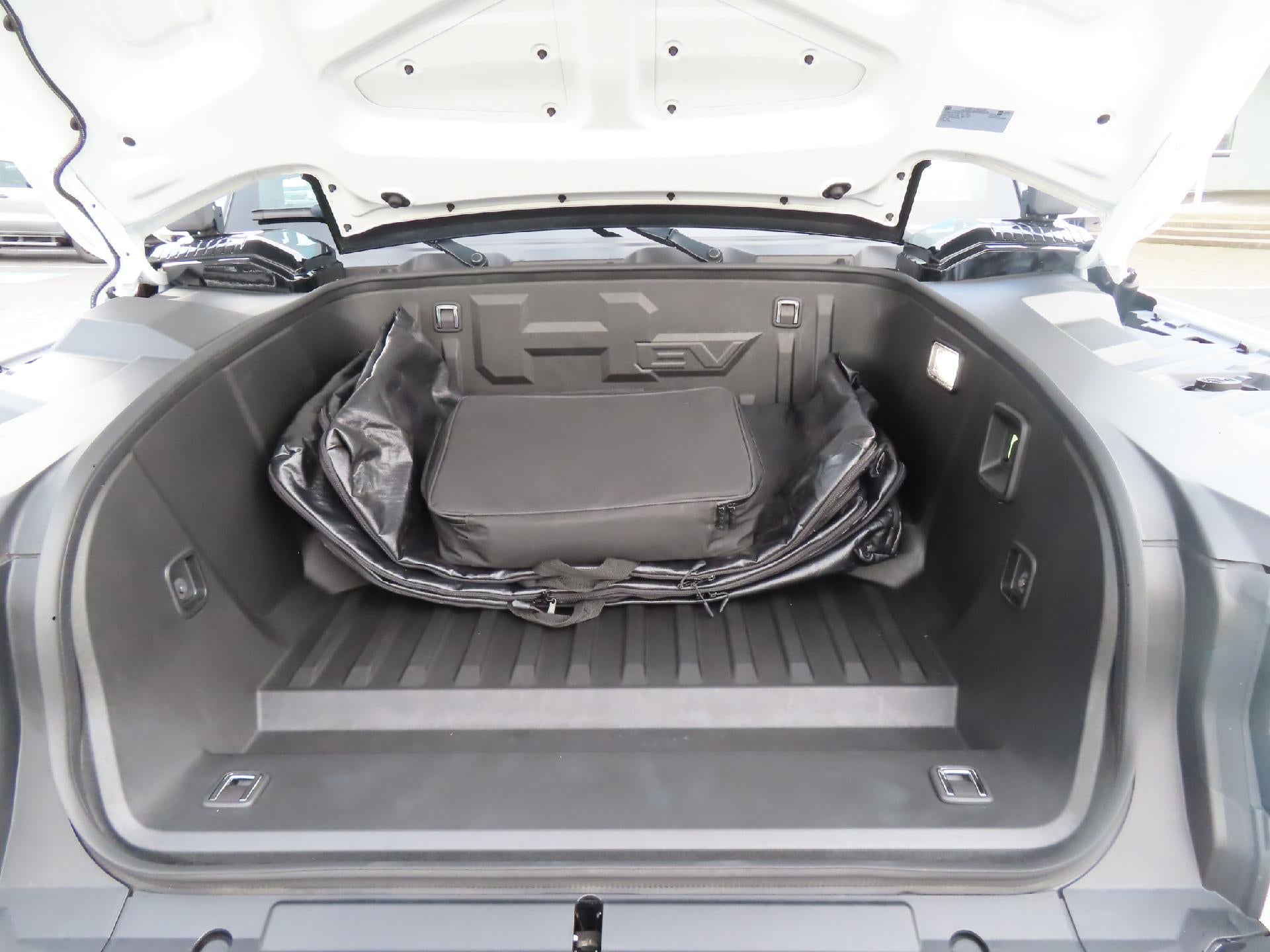- eTrunk lit compartment with Infinity Roof Sky Panel storage capability, cargo tie-downs (4 rated at 110 lbs.) and 12-volt power outlet